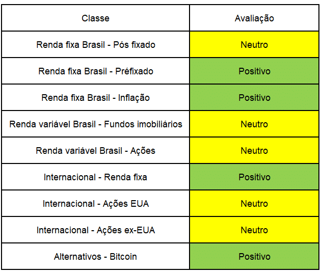 Tabela – Retorno das classes de ativos
