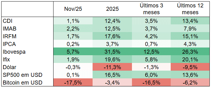 Tabela – Retorno das classes de ativos